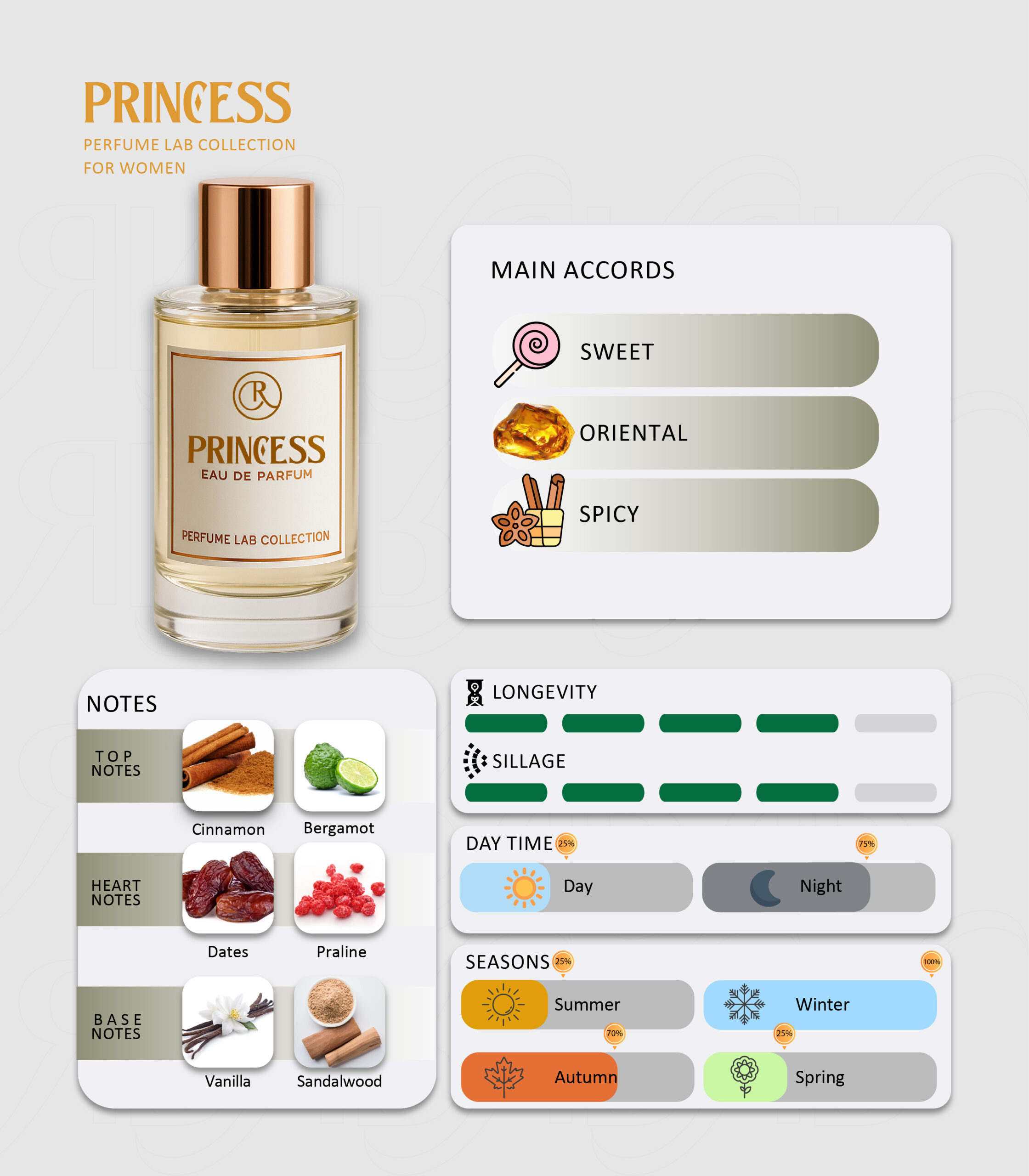Princess embodies the essence of oriental sophistication — a fragrance that feels rich, sensual, and irresistibly feminine.